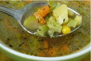 Se pune apa la fiert si se adauga legumele. Se pune si cubul concentrat si tarhonul. E gata cand s-au fiert legumele.